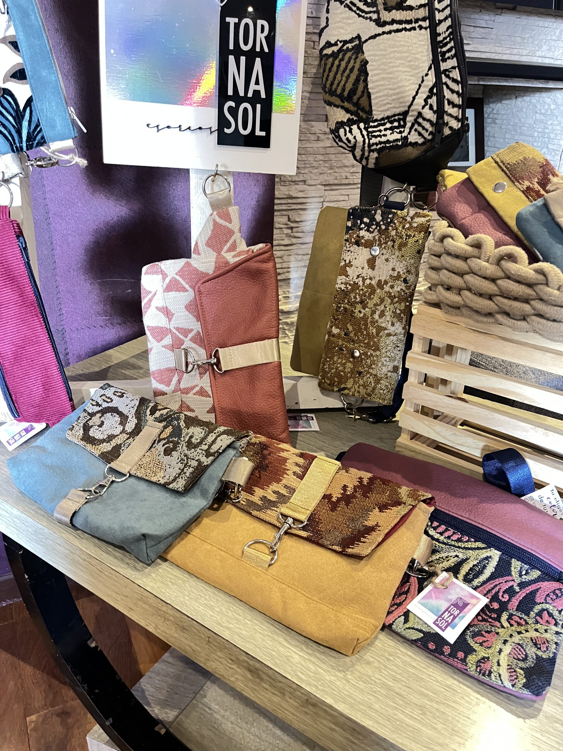 Al principio, sus creaciones eran sencillos bolsos de mano combinando tocuyo y telas estampadas. Sin embargo, observando la demanda, el diseño evolucionó hacia las “bandoleras”. Esta adaptación la llevó a experimentar con cierres de mejor calidad y a buscar materiales que se adecuaran a su visión de combinar colores y texturas. Hoy, las carteras de Tornasol se distinguen por el uso de materiales resistentes como “tapices, cuerinas y cueros volcados”, logrando una fusión única de color y durabilidad.